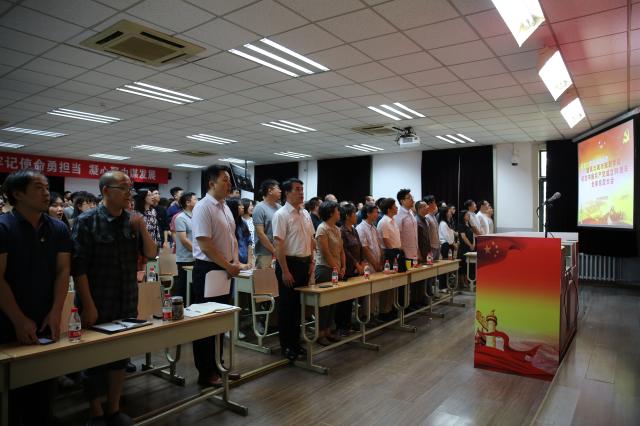 學院黨委書記何立新同誌帶領全體黨員重溫入黨誓詞,全體黨員舉起右拳麵向黨旗莊嚴宣誓。