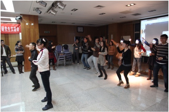 下午,於北大新化學南樓活動室舉行了聯誼活動,各校代表帶來了精彩的文藝表演,大家齊聚一堂,歡聲滿院。其中我校高炎同學進行了精彩的太極和雙節棍武術表演,壓軸節目是我校李夢竹、馬效以及王雯等學生會成員的集體舞蹈表演“江南style”。