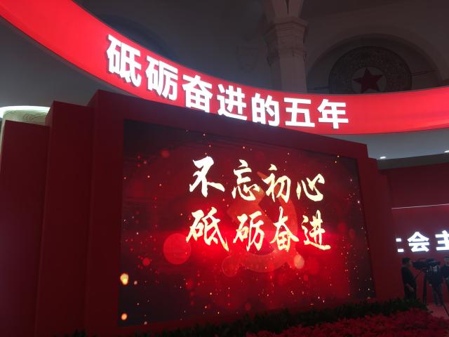“砥礪奮進的五年”大型成就展以習近平總書記係列重要講話精神和黨中央治國理政新理念新思想新戰略為主線,圍繞節點、突出重點、打造亮點,著力體現思想性、成就感、藝術性、體驗性和傳播力,充分運用多媒體和聲光電手段,通過呈現精彩的圖片、文字、視頻、實物、模型、互動體驗等多種展示手段和元素,分“序篇”、“踐行新發展理念引領經濟發展新常態”、“堅持中國特色社會主義政治發展道路推進國家治理體係和治理能力現代化”等10個主題展區和1個特色體驗區,全麵宣傳展示黨的十八大以來黨和國家事業發生的曆史性變革。