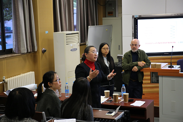 首場報告結束後,肯德爾教授與師生們展開了積極的交流討論,包括OB概念與建築工業化、裝配式建築之間的區別與聯係,infill(填充體)概念的局限性與適用性,OB理念與當代中國所倡導的可持續發展理念之間的聯係等等相關內容。