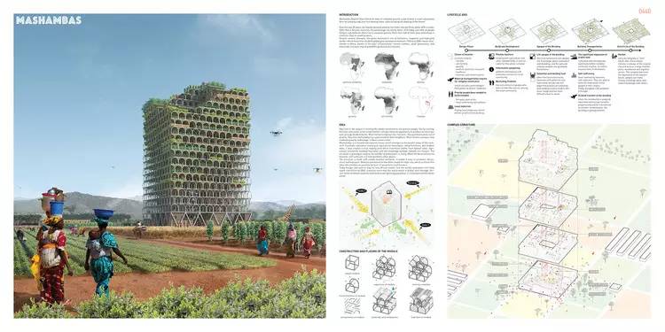 今年評委從444個報名作品中,最後選出了前三名以及22個榮譽提名。本年度的獲獎作品其中就有為撒哈拉以南非洲設計的模塊教育中心及市場,山中垂直堆疊的工廠、娛樂空間及村莊,甚至還有巨杉之中的摩天樓。