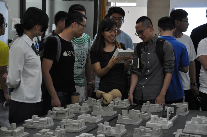 在整個年級的同學們互相參觀完各自的設計作品和圖紙後,課題負責人王韜老師在大廳現場給同學們進行了“街園”的解題,深入詮釋了此次課題的訓練目的和學生應當從中掌握的知識技巧。