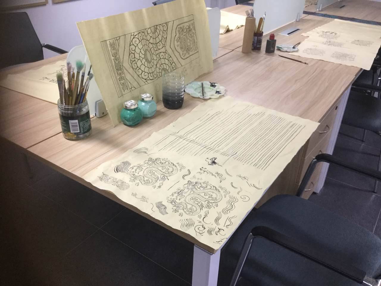 盡管遍經風雨,他依然記得團隊成立之初的滿腔熱忱。那時他一直在為老師當助教,了解到有創空間這樣一個平台。“我本身是非常喜歡古建彩畫的,文化部和設計周的那些設計總監也說,為什麼不把古建元素和現代的文創產品結合起來呢?時下非常火的故宮文創做得不就很好。”他一直就有創業的想法,受此啟發後和幾位同學一拍即合,古建築彩畫團隊就這樣成立了。
