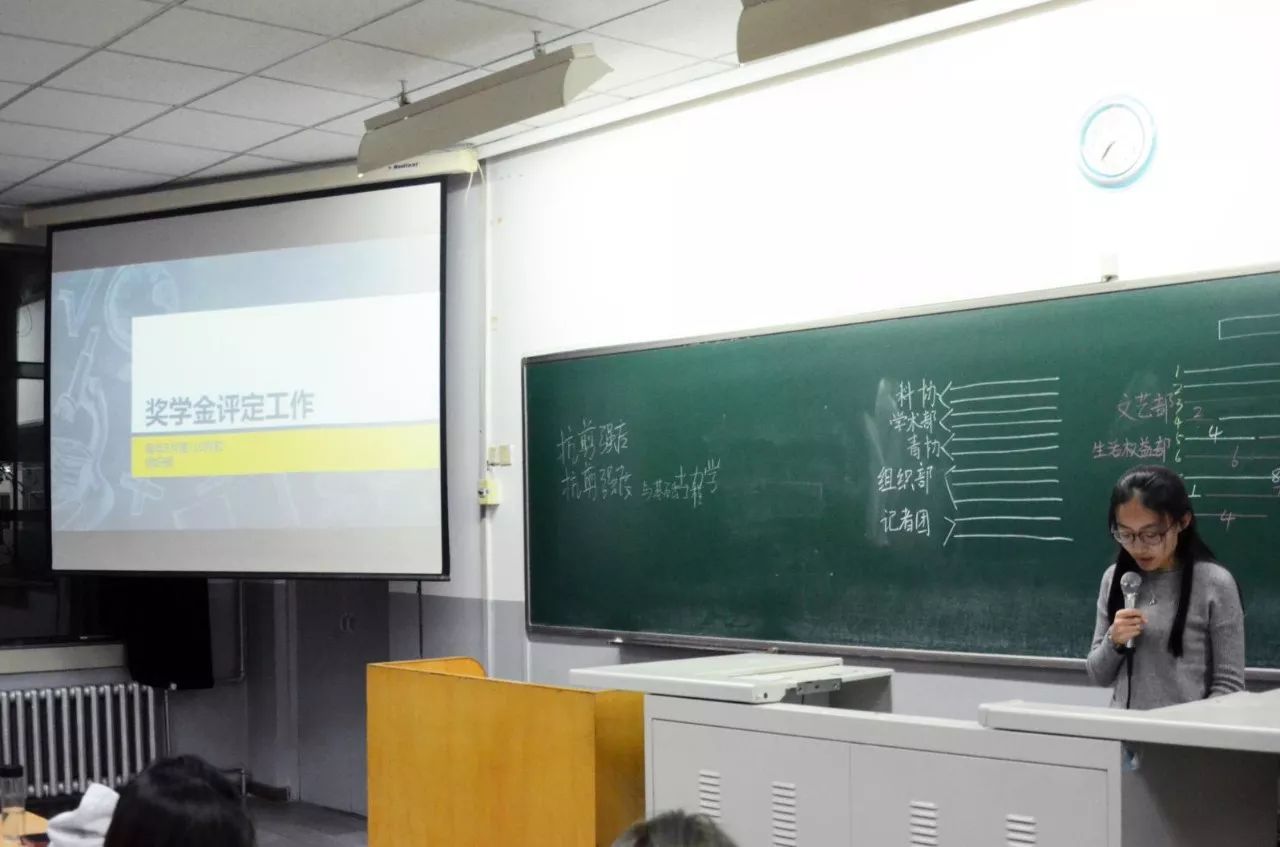 之後,副主席李子曦主要就組織部的獎學金評定工作做了較為詳細的介紹。隨後,副主席楊銘介紹了宣傳部和編輯部近兩個月以來的工作成果,跟大家分享如何處理好學習與工作的關係,並提出要展望未來,規劃人生。接著,記者團團長謝佳昀與大家交流了自己加入學生會的心得體會。