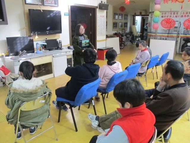 值得一提的是,因為溫馨家園的放映設施壞了,每一次的宣講都是我們的同學站在前邊自己端著電腦,來回走動,給大家展示圖片。