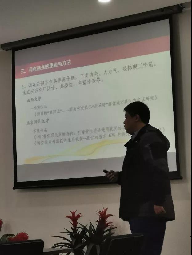 李習文老師有著豐富的參賽、辦賽經驗,本次培訓會從審題、選題、調查思路及方法、論文寫作與打磨、作品的學術規範五方麵為大家深入講解。李老師強調,作品審題要明確,切忌居高臨下和批判社會與政府,建議具體化;調查方法上,要關注社會熱點問題,體現研究的內容與深度;寫作方麵,要重視思維邏輯,問題的提出、成因、現狀的分析、提出對策等階段都要清晰,就事論事,忌過分升華;在書寫上,要充分學習寫作規範,按照架構及格式要求認真完成。