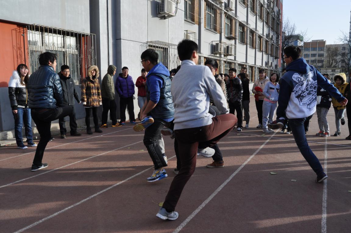 第一個進行的是螃蟹背西瓜,2 名隊員背對背手挽手站於起跑線後,共同用背部夾住氣球前行,保證氣球不掉不爆。在考驗大家協作與速度的同時,略顯滑稽的動作也趣味性十足,大家笑聲連連。隨後是需要全體部員參加的跳長繩比賽。大家的技術參差不齊,但仍互相包容,甚至各部之間互相幫助,讓這次的趣味運動會更具溫情。第三個進行的是搶椅子,主要考驗的是各部部長的觀察能力、靈活反應與堅決果斷。大家包圍成圈觀戰,為部長們加油,一片笑語歡聲。踢毽子與套呼啦圈接力都主要體現團隊配合能力,但一個更強調耐心,一個則需要速度。最後一項比賽,也是最激情的鬥雞比賽,負責組織比賽的體育部的部員也參加了這個比賽。大家需要在保護自己“雞王”的同時將別隊的“雞王”擠出邊界。靠的是團隊的計謀、技巧、力量。大部分隊伍都是清一色的男生,讓比賽更加激烈有趣,樂翻全場。運動會最後,外聯部奪得第一名,辦公室第二、生活部第三。排名前三的隊伍紛紛領到了自己的獎品。