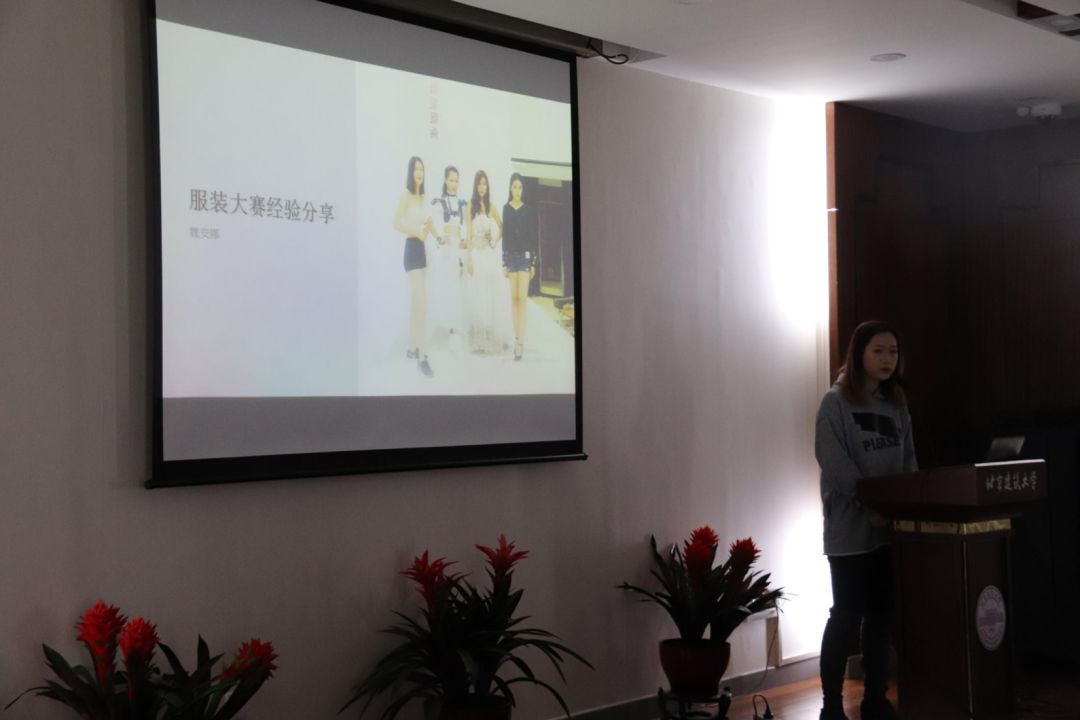 魏安娜同學分享了舞台表現方麵的經驗,並以模特的角度使參賽者們了解到設計師和模特之間的溝通與配合。