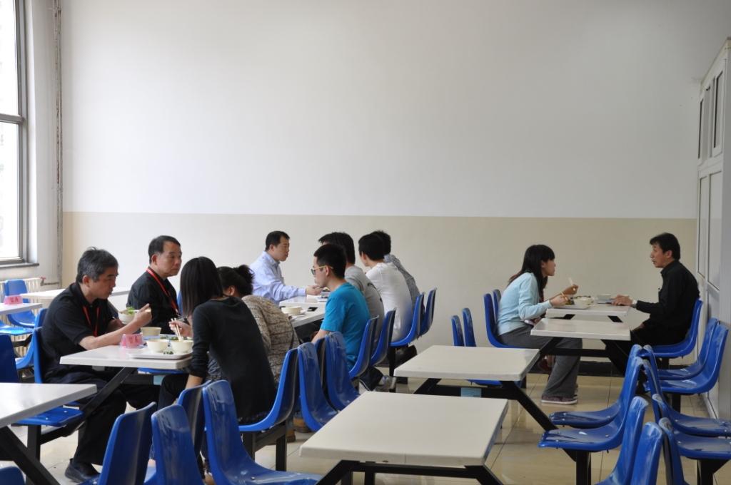 召開了教師、學生及校友座會。中午,評估專家視察小組專家先後來到學校食堂一層與同學們一起就餐並進行了深入的交談。