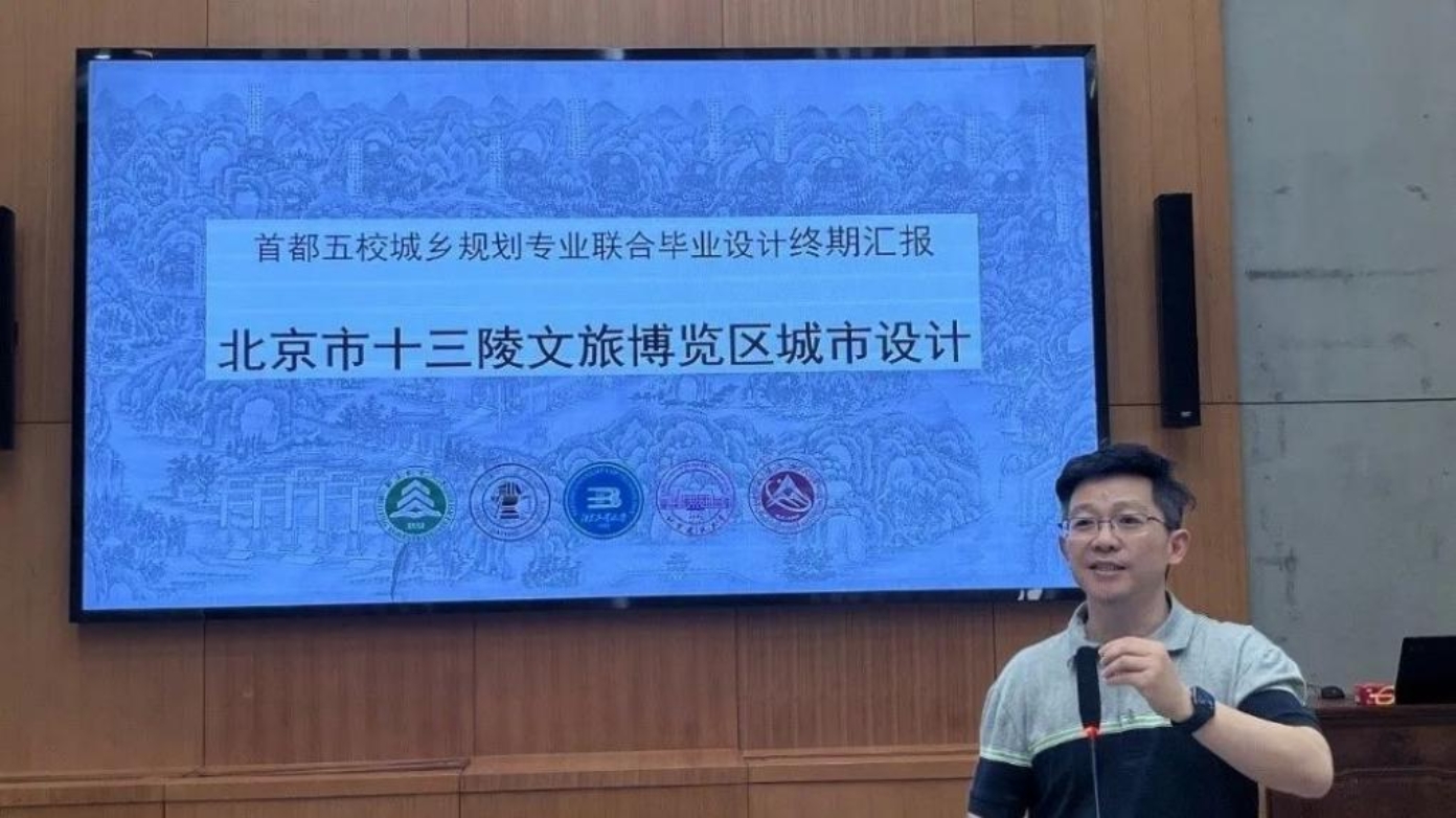 2023年5月27日上午9點,第一屆首都五校城鄉規劃專業聯合畢設終期答辯在北京林業大學園林學院垂花門圓滿舉辦。本次聯合畢業設計的主題為文化傳承視角下北京明十三陵文旅博覽區城市設計。課題研究分為總體概念性城市設計和重要片區城市設計兩個階段。出席本次答辯的指導教師有北京林業大學園林學院城鄉規劃係係主任李翅教授、高原老師、賈宜如老師,北京交通大學建築與藝術學院佘高紅副院長、徐高峰老師,北京工業大學城市建設學部城鄉規劃係齊羚老師、高潔老師、戎卿文老師,泛亞電競app下載泛亞電競app下載城鄉規劃係係主任榮玥芳教授、林浩曦老師,北方工業大學建築與藝術學院城鄉規劃係任雪冰老師。來自北京林業大學、北京交通大學、北京工業大學、泛亞電競app下載、北方工業大學五所高校的23名同學分為九組展示交流終期成果。本次答辯特別邀請清華大學建築設計研究院文旅分院項目總負責人陳妙衝博士對學生方案進行點評。