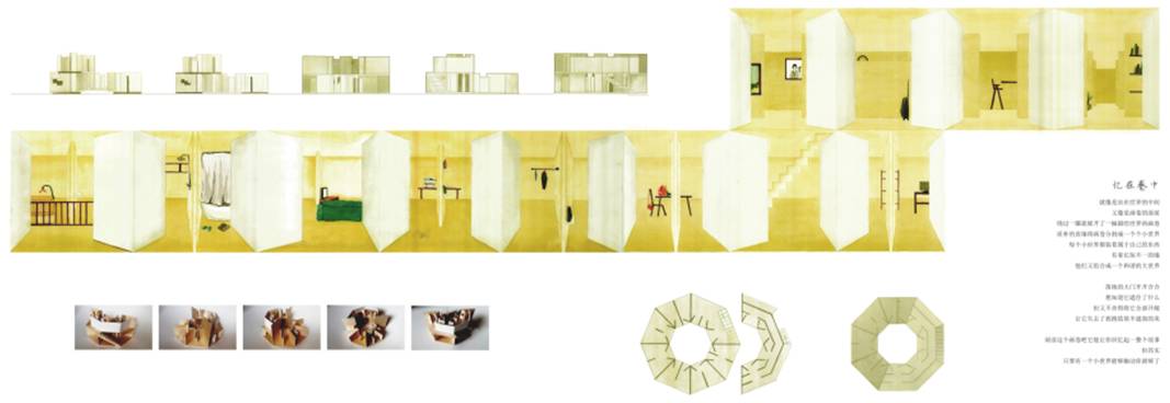 總平麵圖、剖麵圖、剖透視圖和模型照片(圖紙比例、模型比例自定),及其他作者認為必要的表達設計理念和策略的分析或示意圖;200字以內的設計概念說明。