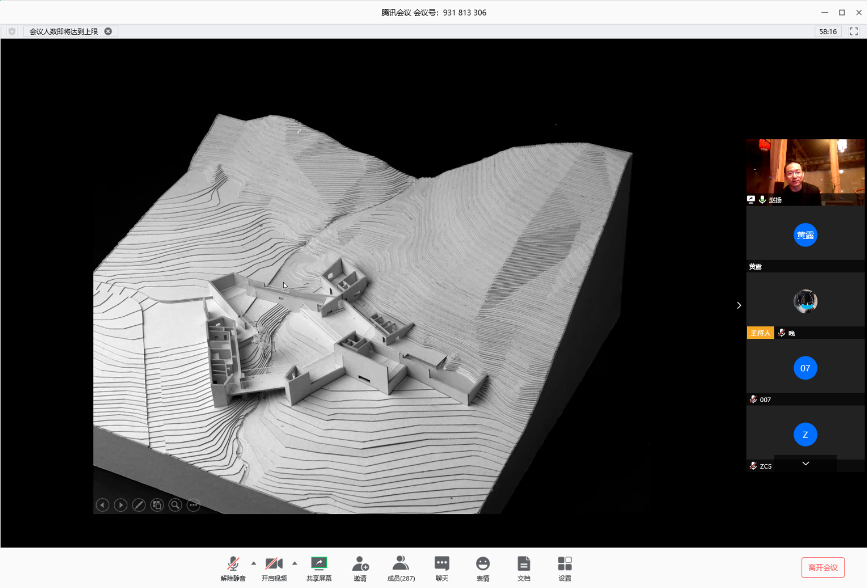 趙揚回顧了其建築實踐的多個階段與設計作品,從概念構思、方案深化、細部構造等方麵,向線上聽眾闡述他對場地策略與生活方式的理解。趙揚將設計看做是“求道”的過程,提出“敞開心扉”是建築學科的未來希望,且建築師應傳承“人文精神”。在自由提問階段,同學們踴躍發言,提出了關於生活方式的表達、未建成的設計等問題,趙老師逐一詳細解答。